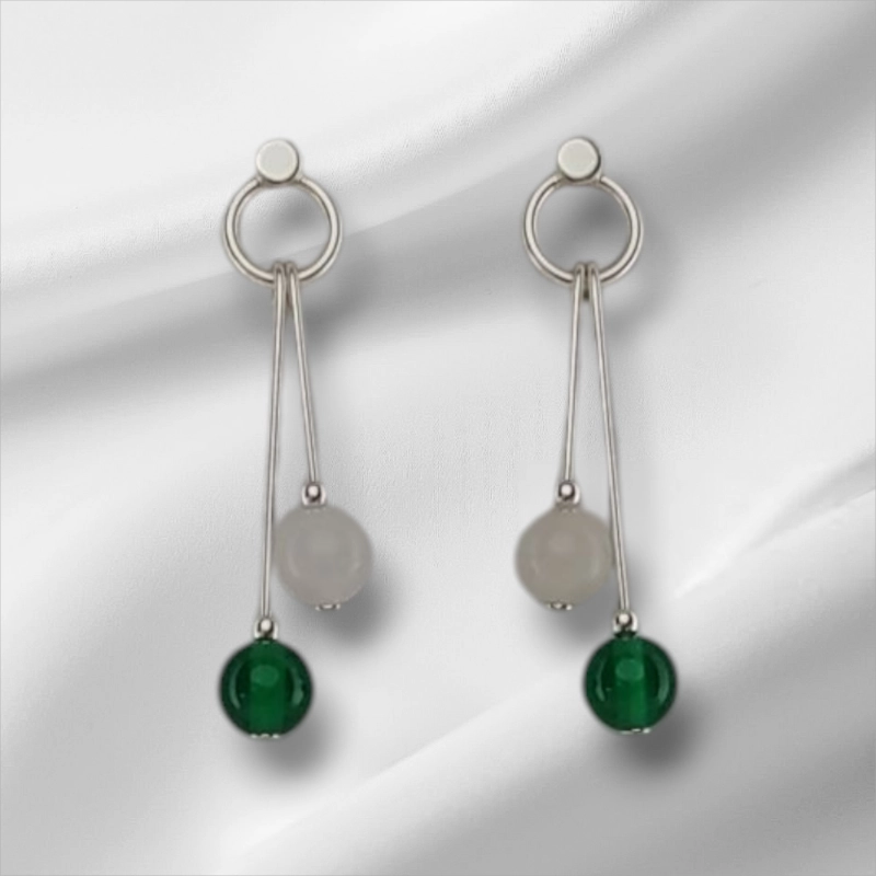These white and green earrings are made in honour of Fermanagh county’s spirit. Bold, balanced, and full of quiet pride.